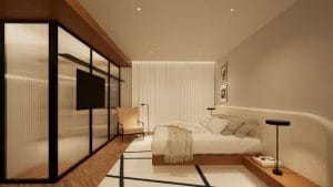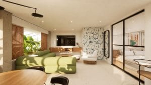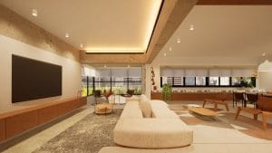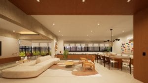 • Semimobiliado (móveis fixos em áreas sociais e bwcs)