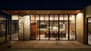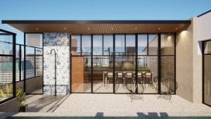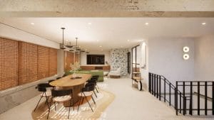 No segundo pavimento, a área gourmet integrada à área externa, ainda com uma suíte versátil que complementa o espaço, enquanto a sala de jantar e estar proporcionam um ambiente acolhedor.