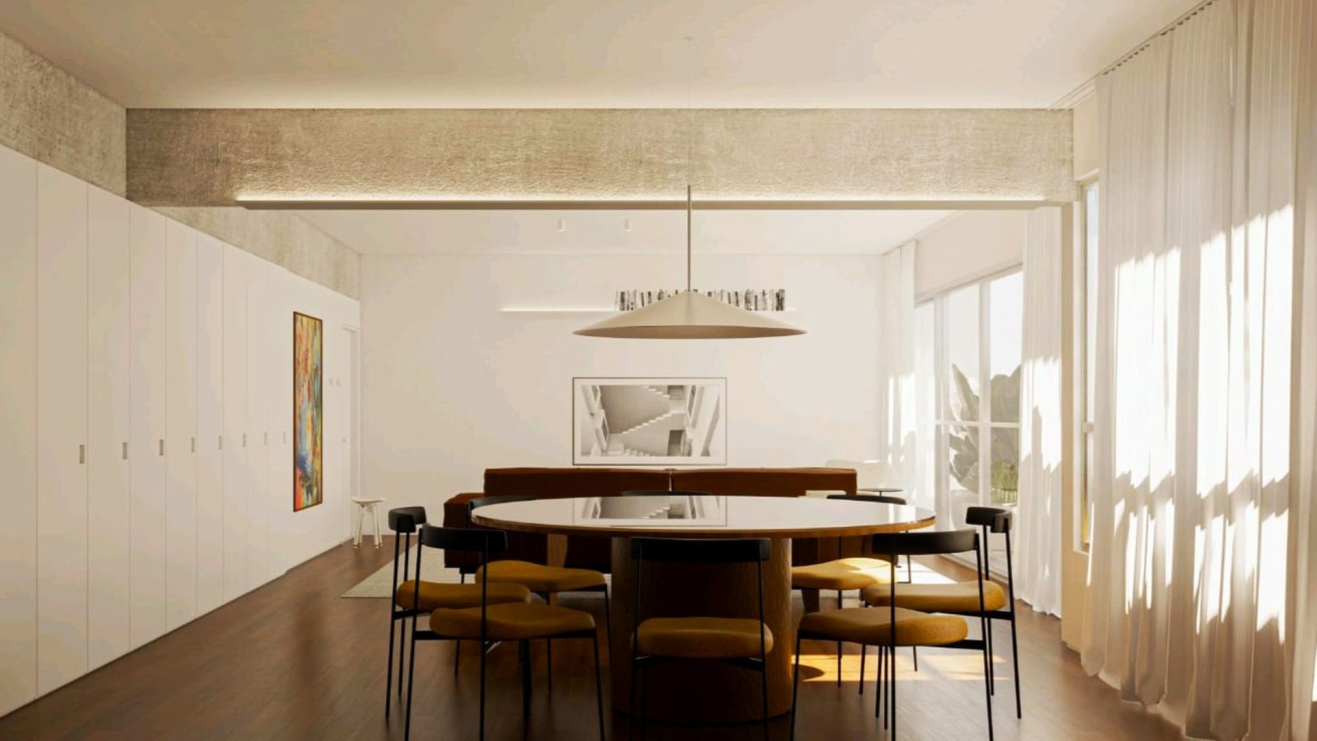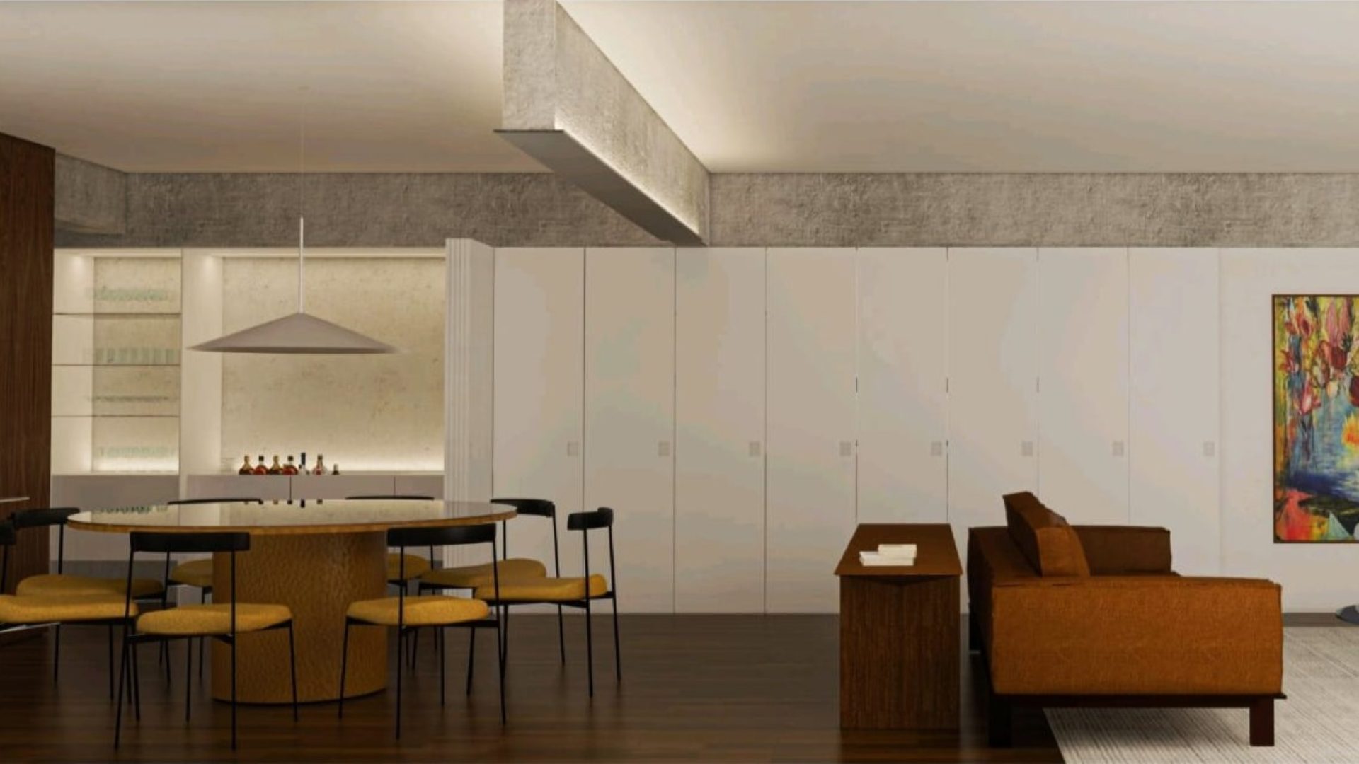 Localizado no 11º andar, com 159 m² de área privativa e face Leste/Norte, o imóvel oferece ambientes amplos e bem iluminados. A área social integra sala de estar e cozinha em conceito aberto, criando um espaço fluido e ideal para receber amigos e familiares. A cozinha já conta com eletrodomésticos e marcenaria planejada, unindo praticidade e design.