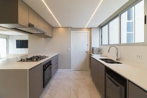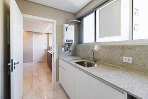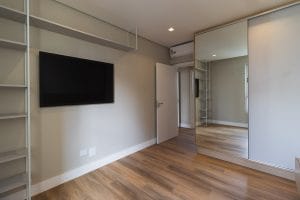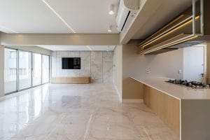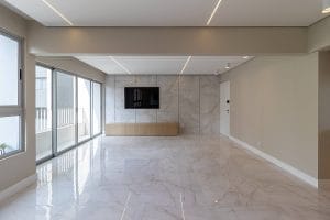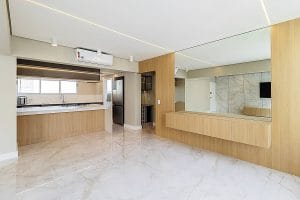 - Como o retrofit transformou esse apartamento?: Instalações elétricas e hidráulicas totalmente renovadas, Readequações de projeto para trazer mais amplitude e integração entre os ambientes, proporcionando mais conforto e funcionalidade, Novos revestimentos. Louças, metais, marcenaria, tampos em pedra, luminárias e portas