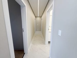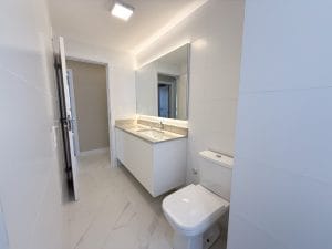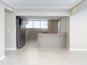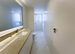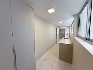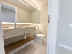 - Como o retrofit transformou esse apartamento?: Instalações elétricas e hidráulicas totalmente renovadas, Readequações de projeto para trazer mais amplitude e integração entre os ambientes, proporcionando mais conforto e funcionalidade, Novos revestimentos. Louças, metais, marcenaria, tampos em pedra, luminárias e portas