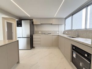- Diferenciais: • Finalizando revitalização • 4º andar • Face Leste/Norte • 3 quartos, sendo 2 suítes • Sala e cozinhas integradas • Cozinha com eletros • Lavabo • Sacada • Piso laminado e porcelanato nas áreas frias