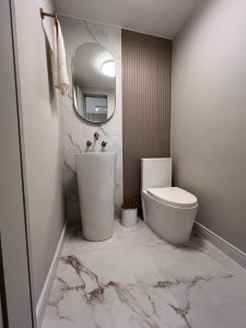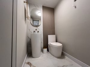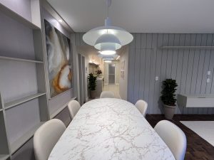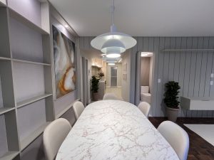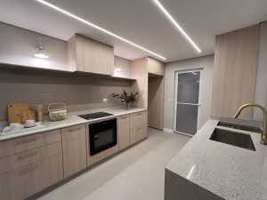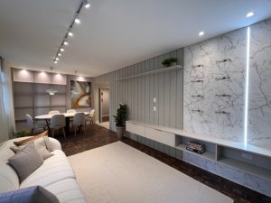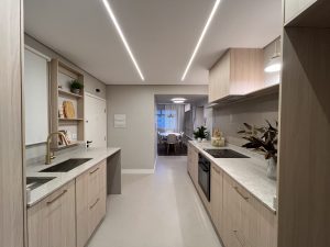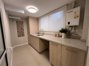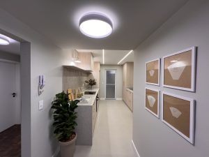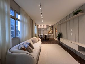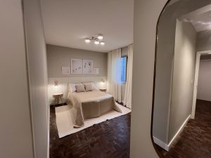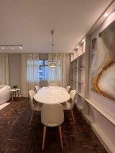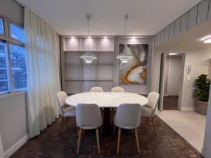 - Diferenciais: • Piso em porcelanato na cozinha, lavanderia, banheiros e lavabo; • Restauração do piso de madeira existente nas áreas sociais: hall, sala de estar, sala de jantar, hall íntimo e quartos; • Revestimento das paredes das áreas molhadas com porcelanato e cerâmica; • Forro de drywall no hall, sala de estar, sala de jantar, cozinha e lavabo; • Iluminação embutida no forro de drywall; • Luminárias novas em todos os ambientes (todas em LED); • Elétrica e quadro de distribuição novos (toda fiação, disjuntores, interruptores e tomadas serão trocados); • Hidráulica nova em todos os ambientes: cozinha, lavanderia, lavabo e banheiros; • Louças sanitárias novas nos banheiros; • Cuba, calha úmida e torniera novas na cozinha; • Tanque e torneiras novos na lavanderia; • Metais novos no lavabo e banheiros; • Pintura acrílica fosca nova em todas as paredes, Suvinil; • Pintura acrílica nova em todos os tetos e forros, Suvinil; • Fechaduras e maçanetas novas; • Fechadura digital por biometria na porta de entrada; • Rodapés em MDF novos em todos os ambientes com piso de madeira; • Móveis planejados no hall, sala de estar, sala de jantar, cozinha, lavanderia, banheiros e quartos;
