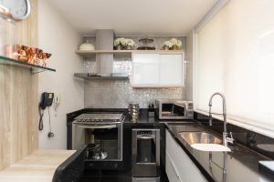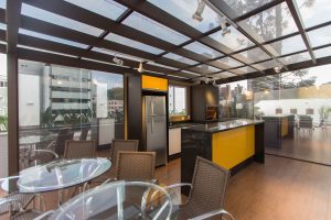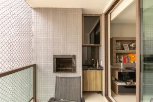 Os ambientes sociais são integrados, e a sacada com churrasqueira à carvão é ideal para receber e aproveitar momentos de lazer. A cozinha e as áreas comuns contam com marcenaria e acabamentos de alto padrão, garantindo praticidade e elegância no dia a dia.