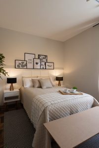 O apartamento conta com sala de estar, sala de jantar, cozinha em conceito aberto, lavanderia, depósito/despensa, três quartos, banheiro social, uma vaga de garagem livre e coberta, e elevador. Todas as áreas foram completamente renovadas, incluindo pisos em porcelanato e taco revitalizado, elétrica e hidráulica novas, luminárias LED, louças e metais novos, pintura acrílica Suvinil, fechaduras modernas, incluindo digital por biometria. O imóvel acompanha móveis planejados em vários ambientes e itens de decoração, proporcionando conforto e praticidade. Além disso, há uma decoração cenográfica para melhor visualização dos espaços.
