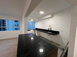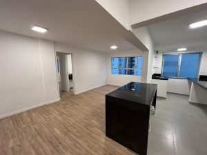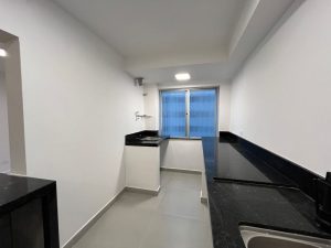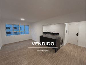 - Diferenciais: • Reformado • 71 m² • 14ª andar • Face Norte e Oeste (ensolarado) • Sala e cozinhas integradas • Cozinha com ilha e tampo em granito • Lavanderia • 2 quartos, sendo 1 suíte • Banheiro com ventilação natural • Piso laminado e porcelanato nas áreas frias • 01 vaga de garagem coberta e livre * Consulte condições para receber o imóvel com todos os planejados e eletros novos.