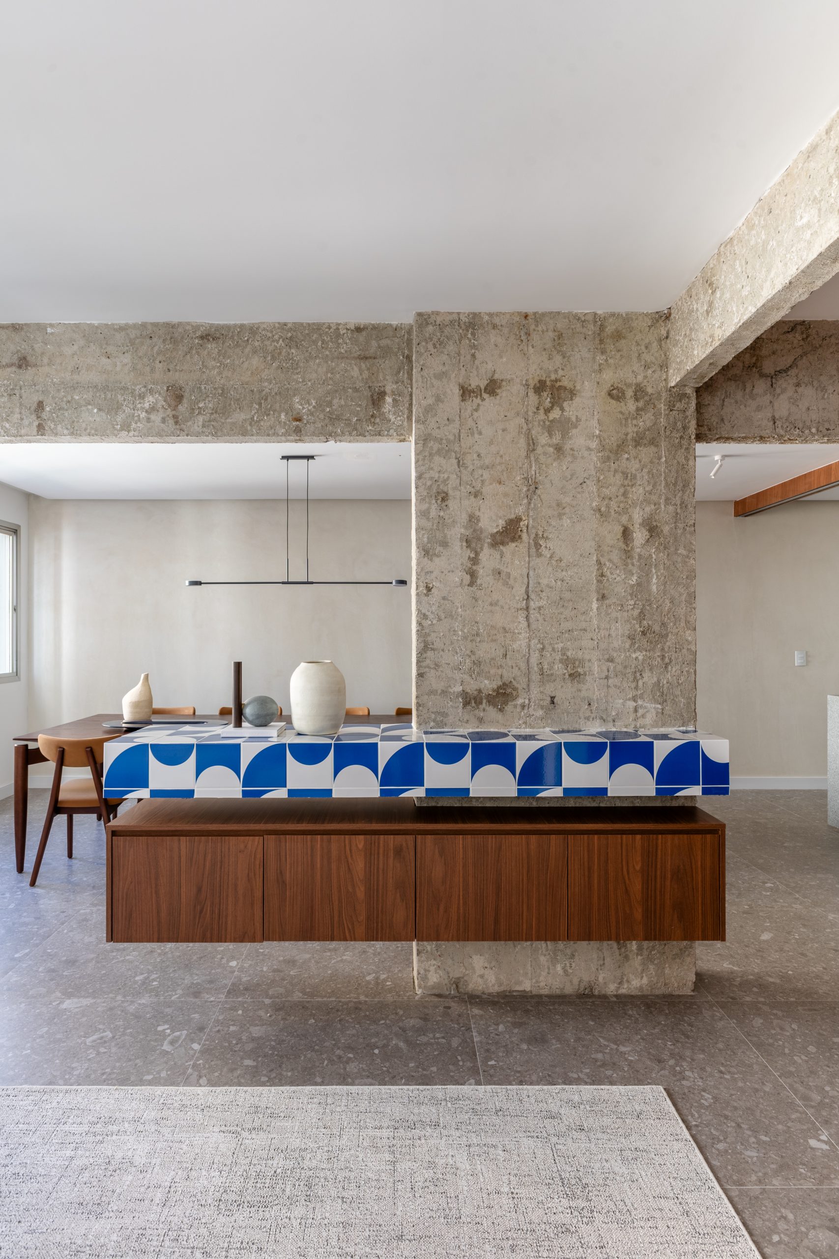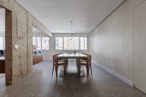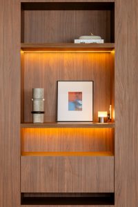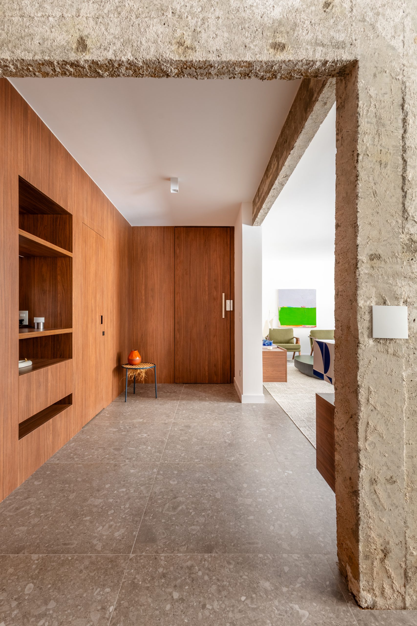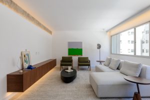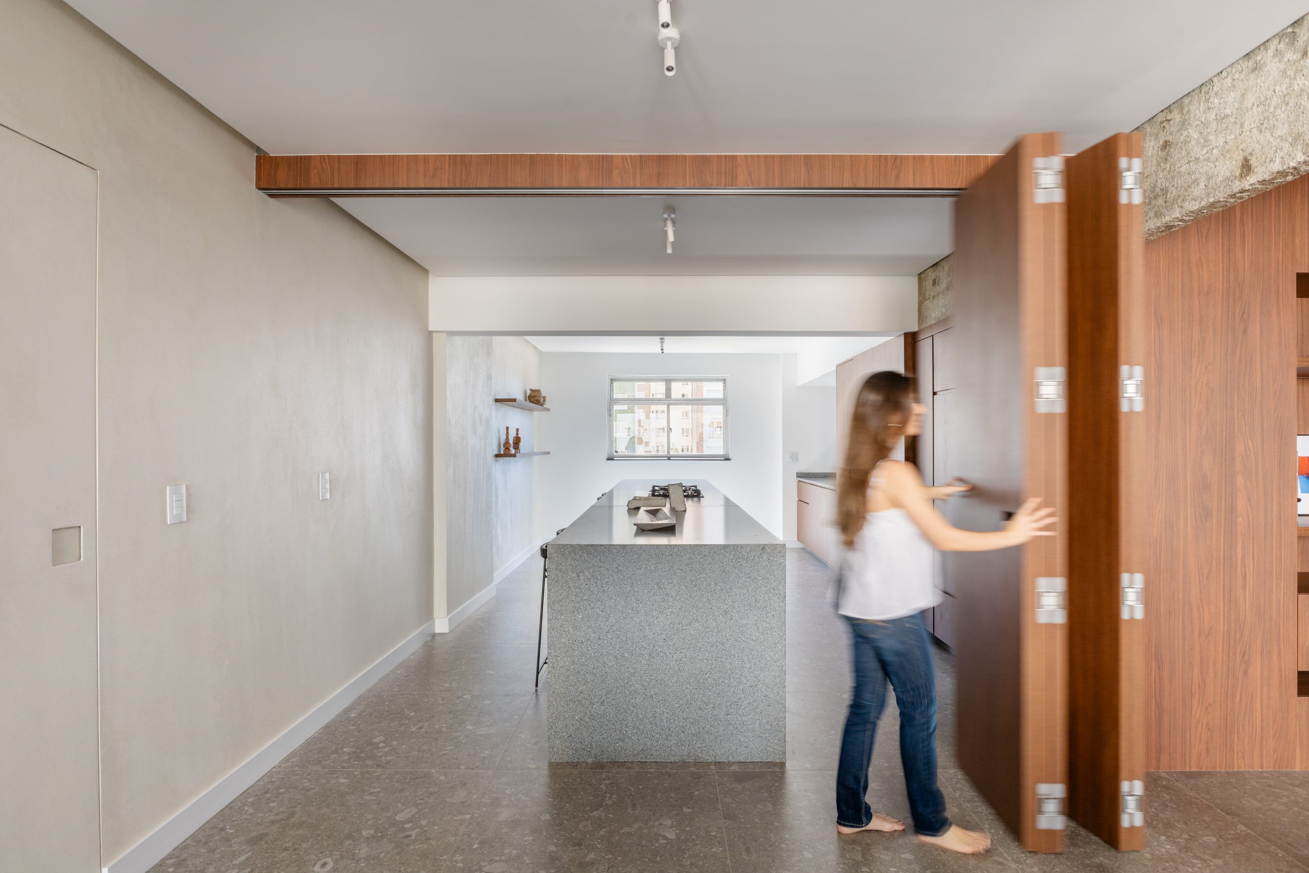 - Como o retrofit transformou esse apartamento?: Instalações elétricas e hidráulicas totalmente renovadas, Readequações de projeto para trazer mais amplitude e integração entre os ambientes, proporcionando mais conforto e funcionalidade, Novos revestimentos. Louças, metais, marcenaria, tampos em pedra, luminárias e portas