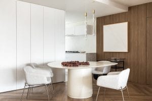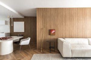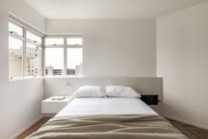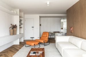 - Como o retrofit transformou esse apartamento?: Instalações elétricas e hidráulicas totalmente renovadas, Readequações de projeto para trazer mais amplitude e integração entre os ambientes, proporcionando mais conforto e funcionalidade, Novos revestimentos. Louças, metais, marcenaria, tampos em pedra, luminárias e portas